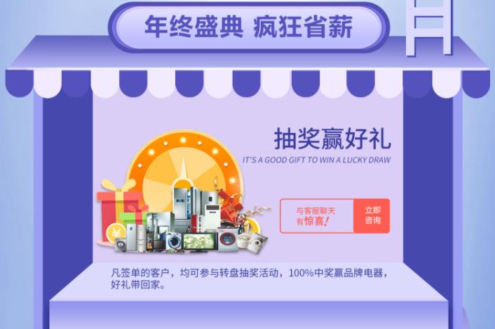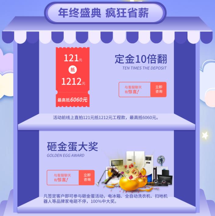 砸金蛋大獎:凡簽定客戶即可參與砸金蛋活動,電冰箱、全自動洗衣機、掃地機器人等品牌家電砸不停,100%中大獎。