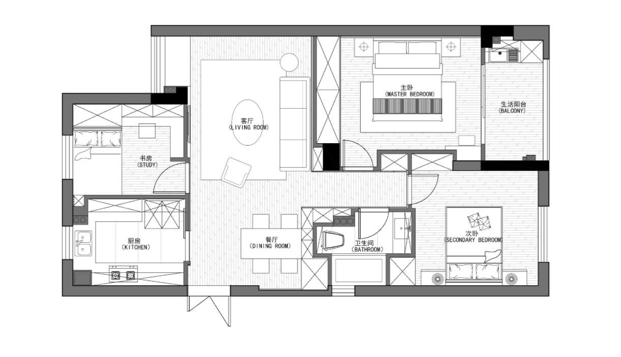1、 全屋戶型并沒有做太大變動,為了滿足業主今后的使用需求,以突出居住空間為主,做了一個休憩房間。
