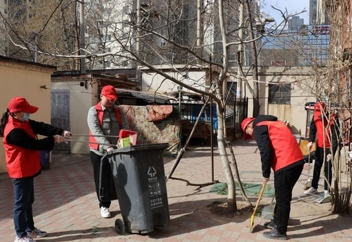 上午9點,志愿者們身穿志愿服務(wù)紅色馬甲,手拿勞動工具一路興致高昂地來到省四建小區(qū)。經(jīng)過與物業(yè)溝通勞動內(nèi)容后,大家迅速行動起來,有的拿笤帚清掃小區(qū)主干道上的煙頭、紙屑,有的拖著垃圾桶收集清掃的垃圾,大家不怕臟、不怕累,爭先恐后,一片熱火朝天的景象,不一會兒一條干凈整潔的道路就呈現(xiàn)在小區(qū)居民面前。