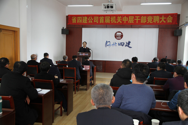 公開競(jìng)聘選賢才,四建才俊展風(fēng)采。2021年2月24日,省四建公司首屆機(jī)關(guān)中層正職崗位競(jìng)聘會(huì)在四樓培訓(xùn)中心舉行。30人(次)英才跨上講臺(tái),暢談自己對(duì)11個(gè)中層正職崗位的履職目標(biāo)和創(chuàng)新舉措,為公司各部門的管理獻(xiàn)計(jì)獻(xiàn)策。這是公司成立以來首次機(jī)制改革大規(guī)模人才選拔考評(píng)活動(dòng)。公司黨委書記董事長董富強(qiáng)發(fā)表開賽致辭和總結(jié)講話。公司黨委副書記、紀(jì)委書記、工會(huì)主席李懷生主持競(jìng)聘大會(huì)。