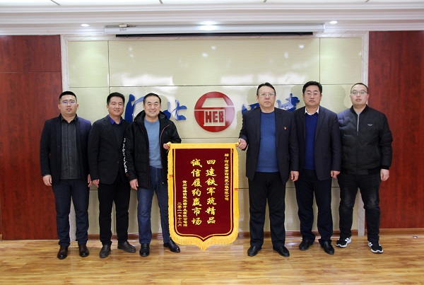 2022年1月7日上午,滄州滄海明珠旅游開發(fā)有限公司副總經(jīng)理姬新強(qiáng)、項目推進(jìn)辦主任楊龍生一行人專程從滄州來到公司,感謝公司保節(jié)點(diǎn)、高質(zhì)量地完成施工任務(wù),并鄭重地將寫有“四建鐵軍筑精品 誠信履約贏市場”的錦旗送到公司黨委副書記、總經(jīng)理唐志強(qiáng)手中。公司副總經(jīng)理張新煜、三分公司經(jīng)理李書偉一同接待了姬新強(qiáng)一行。