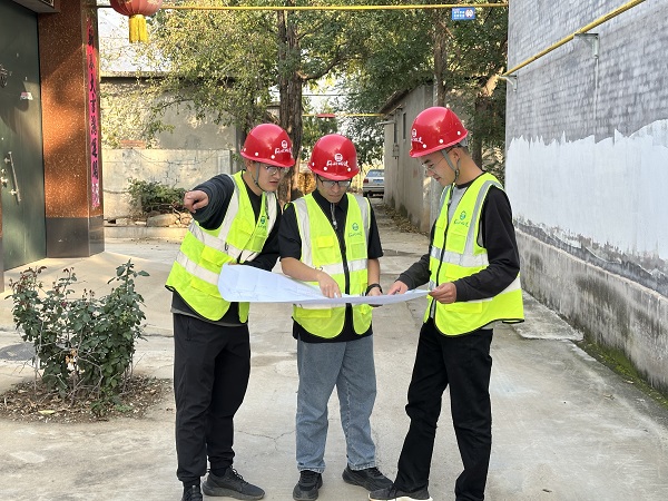 因地下管線復雜,施工中,難免會出現挖斷地下管道的情況,如果被挖斷的管道不能及時得到修復,會影響村民用水。為最大限度減輕施工對村民生活的影響,項目部做實做細施工前的準備工作,先聯系熟悉原敷設管道的村民,摸清摸透地下管道具體位置后再開挖,如遇敷設管線較多的部位,安排技術嫻熟的師傅人工挖掘安裝管道,同時安排人員準備好搶修的材料管件,一旦挖斷管道,立即現場搶修。在同一現場施工的其它單位幾乎每天都有因耽誤村民用水被投訴的情況,元氏管網項目施工的標段很少發生?!肮軠贤诘蒙?、回填干得快,而且,很少耽誤俺們用水?!北O理單位到現場檢查時聽到老百姓對元氏管網項目部如此評價。甲方也經常在微信工作群夸贊該項目部施工的標段是“放心工地”。