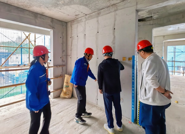 隨后,觀摩團走進現(xiàn)場,先后參觀了質(zhì)量樣板區(qū)和智慧安全體驗中心。樣板區(qū)內(nèi),項目技術(shù)負責(zé)人劉凱通過介紹電梯井道、結(jié)構(gòu)保溫一體板墻體等實體模型質(zhì)量樣板,完整呈現(xiàn)了關(guān)鍵工序的標(biāo)準(zhǔn)化施工流程。智慧安全體驗中心內(nèi),觀摩人員通過智慧工地大數(shù)據(jù)屏的360°全景圖,俯瞰工程全貌,還親身體驗了安全帽撞擊、VR危險感受等設(shè)備。一名觀摩人員感嘆:“這個項目從硬件配置到現(xiàn)場管理,每個細節(jié)都體現(xiàn)了精細化、標(biāo)準(zhǔn)化思路,很有借鑒價值?!?br> 最后,觀摩團一同走進D區(qū)8號樓,實地查看了一、二樓層的施工質(zhì)量,如鏡面般平整的墻面引起了眾人關(guān)注。項目經(jīng)理呂滾才隨即介紹道:“我們采用了‘一板到頂’支模工藝,實現(xiàn)混凝土結(jié)構(gòu)一次成型,相較于傳統(tǒng)工藝,更好地確保了屋面美觀性。”來自張家口市住建部門的一名觀摩人員輕叩墻面稱贊道:“這質(zhì)感,一看就是‘正規(guī)軍’的水平。”