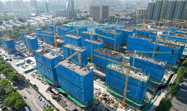 目前,項(xiàng)目36棟住宅樓主體結(jié)構(gòu)施工已完成80%,其中D區(qū)1#、2#樓已封頂,進(jìn)入二次結(jié)構(gòu)施工階段,并同步穿插機(jī)電管線及設(shè)備安裝;地下車(chē)庫(kù)施工完成55%。