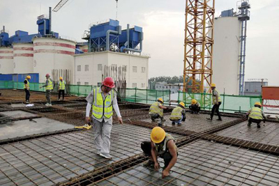 同心協(xié)力完成節(jié)點(diǎn)任務(wù)。水泥配料站、水泥粉磨是業(yè)主目前關(guān)注重點(diǎn),要求8月3日前筒倉(cāng)滑模到14.4米庫(kù)底板、水泥粉磨11.5米平面混凝土澆筑完,為安裝輥壓機(jī)、減速機(jī)等設(shè)備創(chuàng)造條件。時(shí)間緊任務(wù)急,持續(xù)的降雨反而更加激發(fā)了項(xiàng)目部的斗志,水泥配料站筒倉(cāng)施工采用滑模工藝,滑模平臺(tái)上鋼筋綁扎、預(yù)留預(yù)埋安裝、混凝土澆筑、庫(kù)壁壓面等各道工序相互配合,工種銜接默契。雖然雨水經(jīng)常光顧,但是大家沒(méi)有絲毫懈怠,熱火朝天的干勁兒始終未減。水泥粉磨車間樓層高、場(chǎng)地狹窄給施工造成困難,項(xiàng)目部采用白天作業(yè)面施工,晚上班組倒運(yùn)材料等方法,保證施工進(jìn)度。截至7月30日上午,水泥配料站14米庫(kù)底板、水泥磨11.5米平面、水泥及礦粉儲(chǔ)存基礎(chǔ)筏板均已澆筑完混凝土,為項(xiàng)目下一步施工創(chuàng)造了積極有利條件。(三分公司)