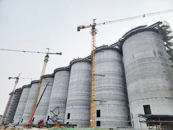 2月28日,A9筒倉準備滑模,作業(yè)工人冒雨加班僅用4天完成滑模機具的組裝。3月16日,A1筒倉鋼梁開始吊裝,項目班子、安全員以及監(jiān)理、甲方的項目負責人集體旁站監(jiān)督,上午9點準時進行260噸履帶吊的試吊,確認無問題后僅用3小時完成主梁的倒運,隨即開始吊裝。3月27日,A9筒倉倉頂環(huán)梁澆筑完成,距離A線全線貫通邁出關(guān)鍵一步。4月17日,項目部率先完成A9筒倉與M101轉(zhuǎn)運站的軸線交接;4月18日,A8筒倉倉頂板澆筑完成,從壓型鋼板安裝到澆筑完成只用了3天時間,標志著A線筒倉全部封頂。隨后全面進入設(shè)備安裝階段,項目部頂住中央環(huán)保組進入銅冶鎮(zhèn)環(huán)保檢查的壓力,一手抓安全文明施工,逐項落實各項環(huán)保要求;一手抓設(shè)備安裝進度,加班加點趕工期,提前兩天完成甲方確定的工期節(jié)點。
