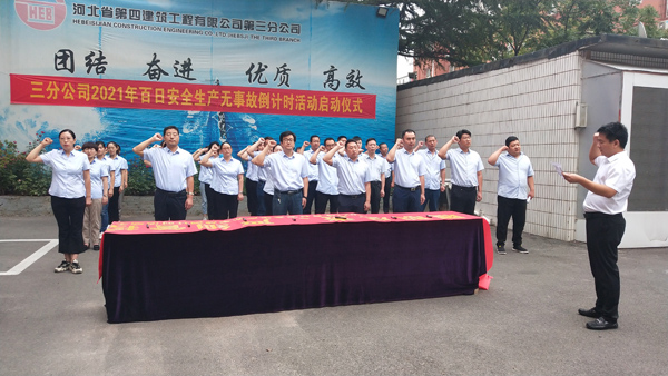 9月18日上午,三分公司組織機關全體職工在分公司院內舉行了第十八次“百日安全生產無事故倒計時”活動啟動儀式,分公司經理李書偉帶領職工進行安全宣誓,隨后大家在印有“履職盡責,嚴細管控”活動主題的條幅上簽名。各項目部也相繼開展了倒計時活動啟動儀式。