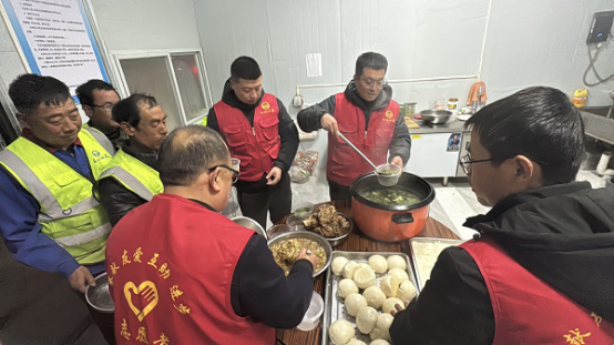 項目務工人員大多是當?shù)卮迕瘢x家較近的務工人員常自帶飯菜加熱食用。然而,天氣寒冷或加班時,飯菜容易變涼。考慮到這一點,項目部志愿者團隊聯(lián)合食堂師傅,為工人們準備了熱餐器具,并額外提供免費雞蛋湯,讓大家在繁忙的施工之余,感受到家一般的溫暖。這一舉措不僅讓工友們吃得安心、干得舒心,更激發(fā)了大家的工作熱情,為施工生產(chǎn)注入了強勁動力。